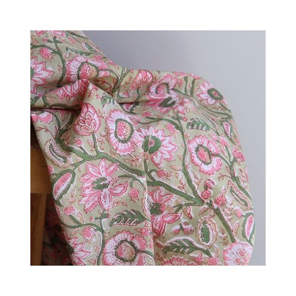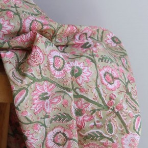 De jolis imprimés indiens pour ces voiles de coton fabriqués selon la méthode artisanale et ancestrale de Block print. L'impression et la teinture sont réalisées à la main, au tampon de bois.