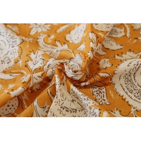 Ce tissu indien avec ses grandes fleurs blanches sur fond ocre sera idéal pour coudre :