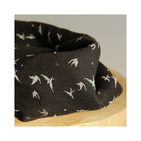 Tissu motif oiseaux, on l'imagine en petite veste, short, robe, haut ...
